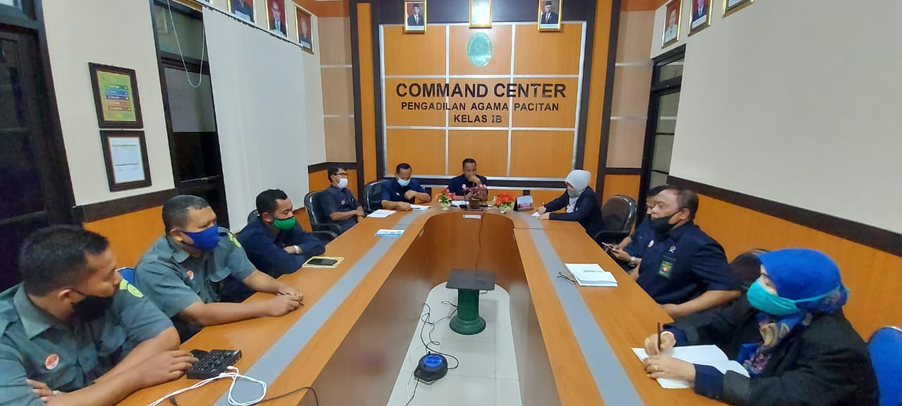 Briefing pagi jajaran kepaniteraan hari ini Selasa tanggal 8 September 2020 tepat jam 7.30, Wakil Ketua PA Pacitan Muhamad Rizki, SH memberikan briefing jajaran kepaniteraan, ada beberapa hal yang disampaikan antara lain one day publish, one day minutasi, APM, dan ZI. Briefing pagi diikuti juga oleh para hakim Pengadilan Agama Pacitan dan tepat jam 8.30 briefing pagi selesai...
