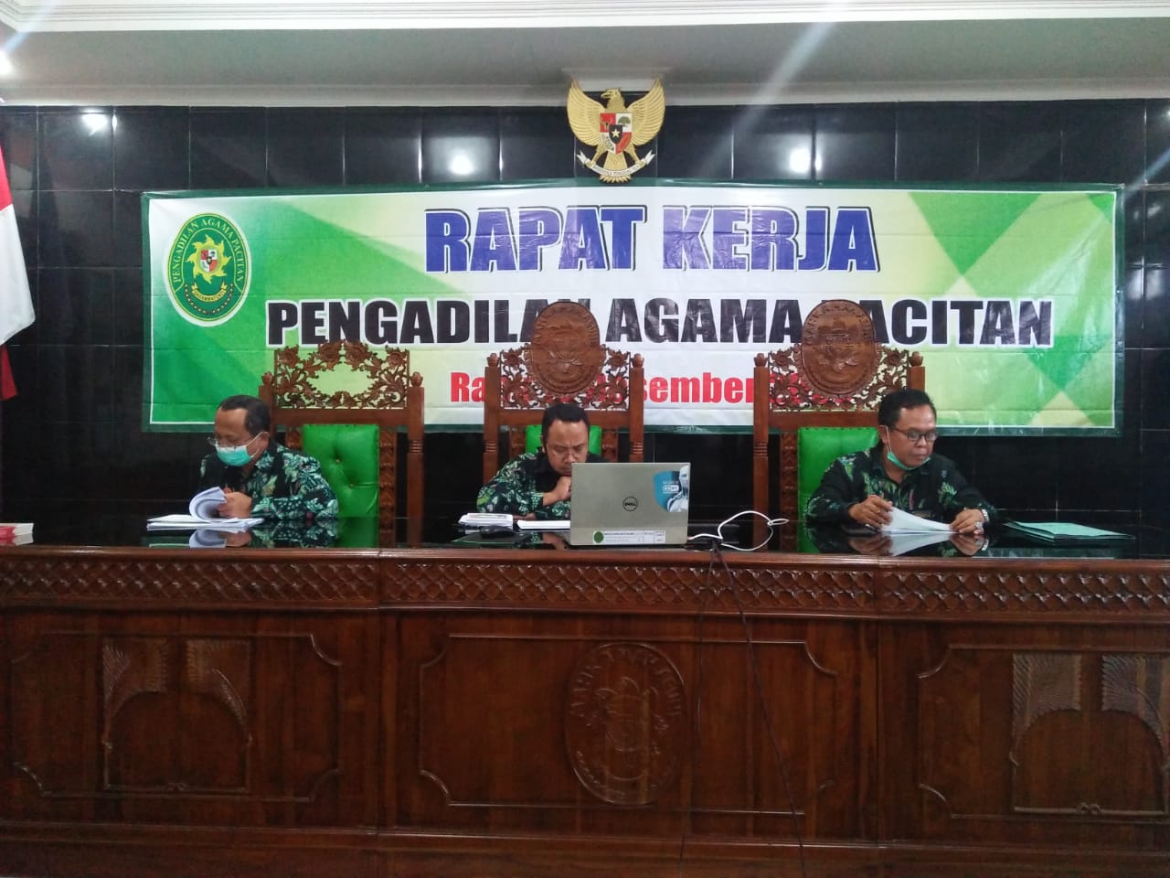 Dalam rangka mewujudkan hasil kinerja yang berkualitas diperlukan suatu perencanaan yang handal, untuk itu pada akhir tahun 2020 ini Pengadilan Agama Pacitan menggelar kegiatan Rapat Kerja yang dilaksanakan pada hari Rabu tanggal 16 Desember 2020 di Ruang Rapat 1 Pengadilan Agama Pacitan.
