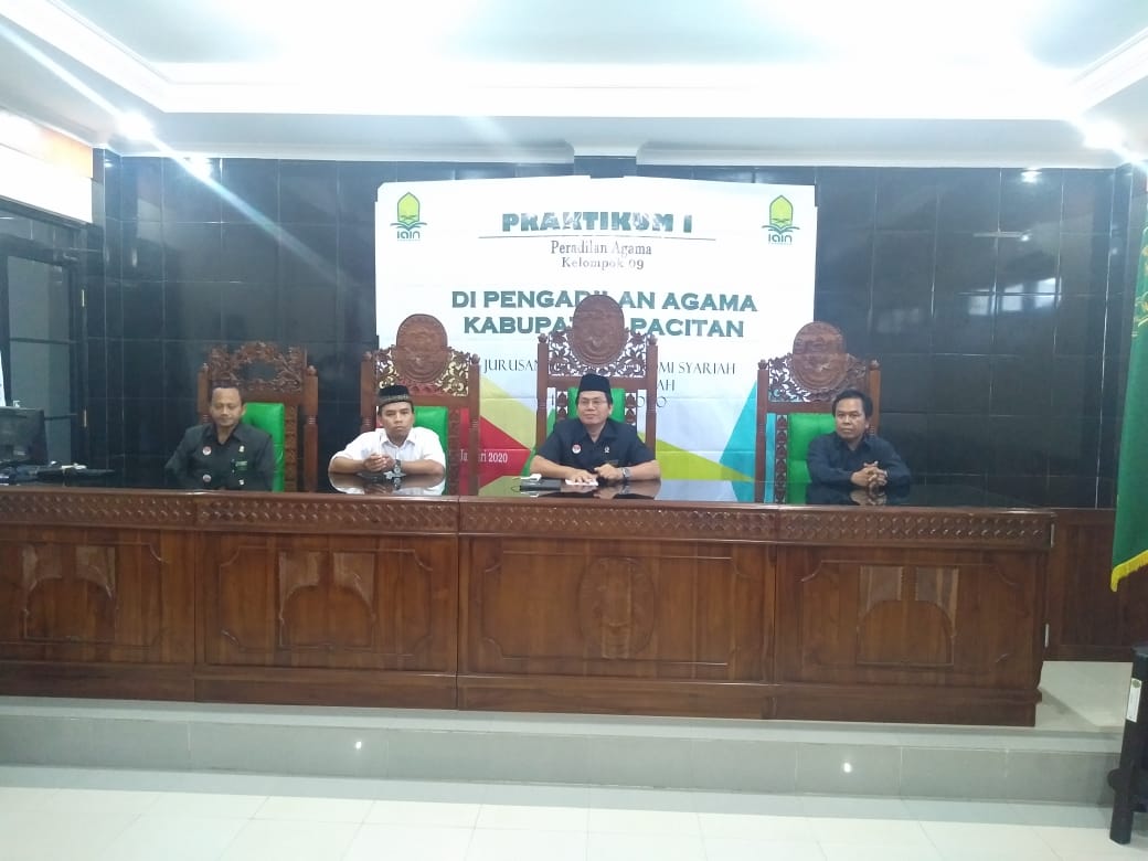 Senin (06/01/2019), pukul 14.00 bertempat di Ruang Sidang Pengadilan Agama Pacitan, telah dilangsungkan penyerahan mahasiswa Praktek Pengaaman Lapangan (PPL) dari Fakultas Ekonomi Syari'ah IAIN Ponorogo. Acara penerimaan mahasiswa PPL ini dipimpin langsung oleh Ketua PA Pacitan, Drs. H.Sumarwan, M.H. Adapun jumlah mahasiswa yang akan melakukan PPL di Pengadilan Agama Pacitan berjumlah 13 mahasiswa yang nantinya akan dibagi menjadi 2 kelompok, yang kemudian nantinya akan bergiliran di bagian kesekretariatan dan di kepaniteraan. Kegiatan PPL ini berlangsung selama 3 minggu mulai tanggal 06 Januari 2020 s/d 24 Januari 2020.