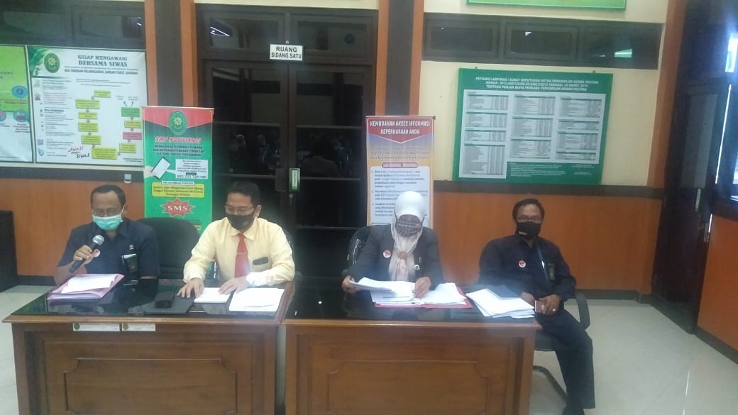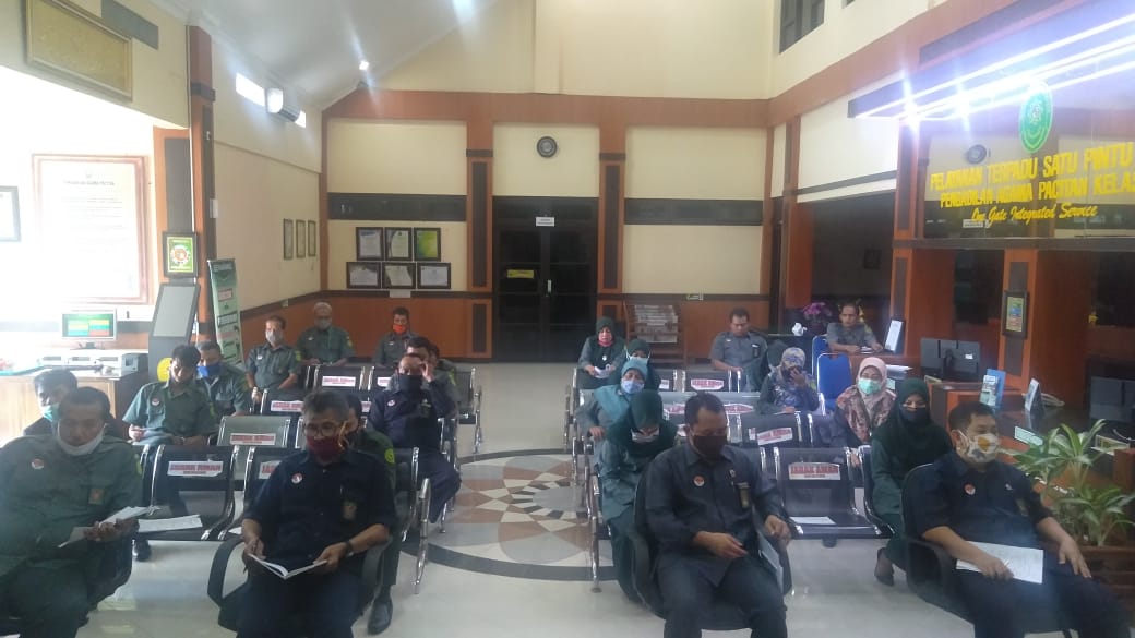 Bertempat di ruang sidang tunggu Pengadilan Agama Pacitan Rabu, 01 Juli 2020 M, Pengadilan Agama Pacitan melaksanakan rapat umum terkait monitoring dan evaluasi Pembangunan Zona Integritas. Rapat dimulai pada pukul 13.30 WIB di hadiri seluruh aparatur Pengadilan Agama Pacitan. Dra. Nurhabibah selaku Ketua Pembangunan Zona Integritas menyampaikan tindaklanjut dari temuan Tim Pemeriksa PTA Surabaya terhadap eviden yang telah kita unggah kemarin untuk menuju WBBM, kepada Bapak, Ibu dan Rekan yang terkait dalam tim ZI yang sudah di SK kan juga yang tidak masuk dalam SK Tim ZI diharapkan kerjasamanya, perhatiannya pemikirannya serta ilmunya untuk bekerjasama dalam meraih predikat WBBM.