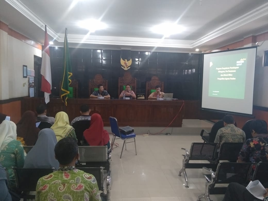 Pacitan, hari Jum’at tanggal 04 Oktober 2019 pukul 09.00 WIB, bertempat diruang sidang utama Pengadilan Agama Pacitan telah dilaksanakan sosialisasi dan pereratan hubungan Bank Syariah Mandiri Cabang Pacitan dengan Pengadilan Agama Pacitan. Dalam kesempatan ini Bank Syariah Mandiri Cabang Pacitan menawarkan beberapa program kepada Pegawai Pengadilan Agama Pacitan yang antara lain adalah pembukaan rekening bagi pegawai Pengadilan Agama Pacitan secara gratis.
