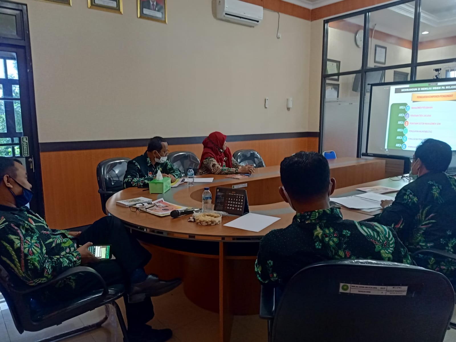 Rabu, 15 Oktober 2020 secara serentak seluruh pimpinan pengadilan agama se-wilayah Pengadilan Tinggi Agama Surabaya melakukan pendampingan presentasi dihadapan Tim Pembangunan Zona Integritas dari PTA dan Badilag. Presentasi dilakukan secara virtual melalui zoom meeting dimulai tepat pukul 08.00 WIB diikuti oleh 27 satker yang ada di lingkup Pengadilan Tinggi Agama Surabaya. Acara presentasi uyang dimoderatori langsung oleh Bapak Bambang Subroto, S.H.,M.M ini berjalan lancar dan masing-masing pimpinan dengan penuh semangat memaparkan pembangunan zona integritasnya di satker masing-masing.
