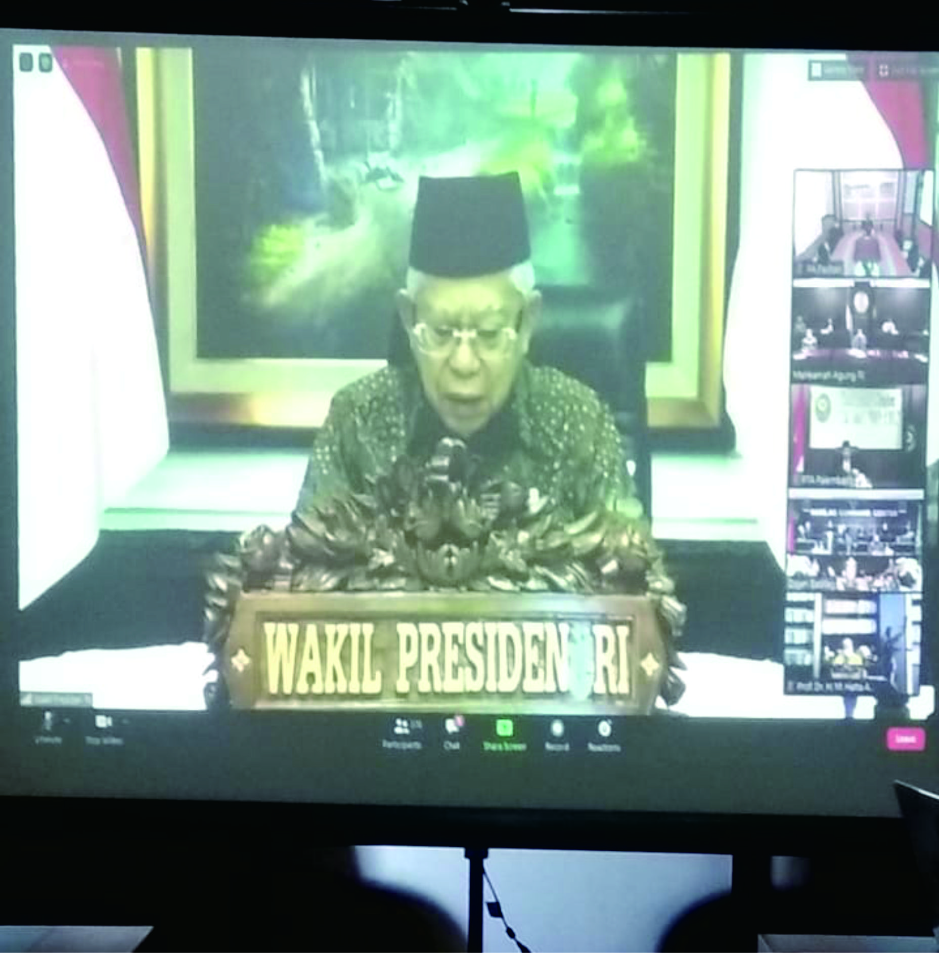 Dalam rangka memperingati Hari Ulang Tahun Mahkamah Agung RI Ke-75, akan dilaksanakan Seminar Nasional Ekonomi Syariah secara virtual kerjasama antara Direktorat Jenderal Badan Peradilan Agama MA RI, Pengadilan Tinggi Agama DKI Jakarta dan Dewan Syariah Nasional Majelis Ulama Indonesia (DSN-MUI) dengan tema "Penguatan dan Penegakan Hukum Ekonomi Syariah Yang Berkeadilan di Indonesia", maka Wakil Ketua dan para hakim Pengadilan Agama Pacitan berkumpul di Command Center dan dengan seksama mengikuti webinar yang secara langsung ditayangkan via Zoom Meeting pada hari ini Rabu tanggal 26 Agustus 2020. Tepat pukul 09.00 WIB kegiatan mulai berlangsung dan dibuka oleh Bapak Wakil Presiden RI dilanjutkan sambutan oleh Ketua Mahkamah Agung RI.