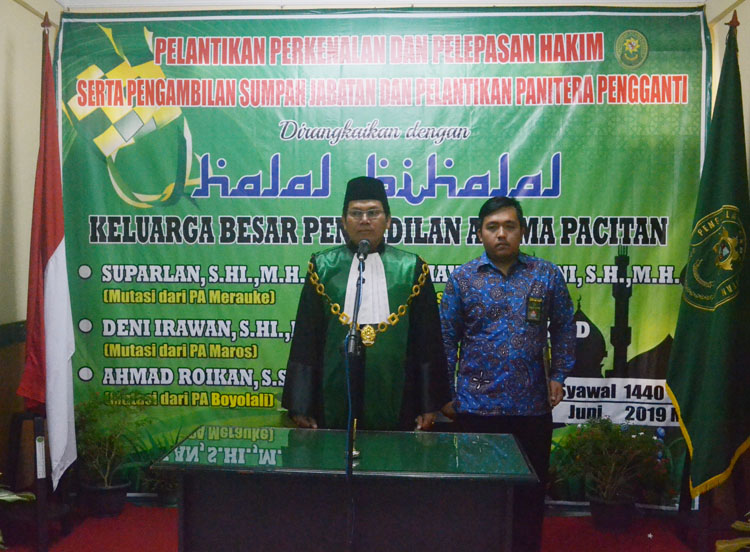 Acara tersebut dirangkaikan dengan Halalbihalal serta pelepasan Hakim Pengadilan Agama Pacitan Drs. Faisol Chadid yang mutasi ke Pengadilan Agama Banyumas.