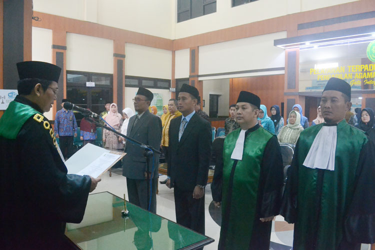 Dalam acara pelantikan tersebut dihadiri oleh seluruh pejabat Pengadilan Agama Pacitan, Tamu undangan dari perwakilan 5 Pengadilan Agama serta Pegawai Pengadilan Agama Pacitan. para pejabat yang disumpah dan dilantik bersumpah akan memenuhi kewajiban dengan sebaik-baknya dan seadil-adilnya, memegang teguh Undang-Undang Dasar Negara Republik Indonesia Tahun 1945, dan menjalankan segala peraturan Perundang-Undangan yang berlaku.