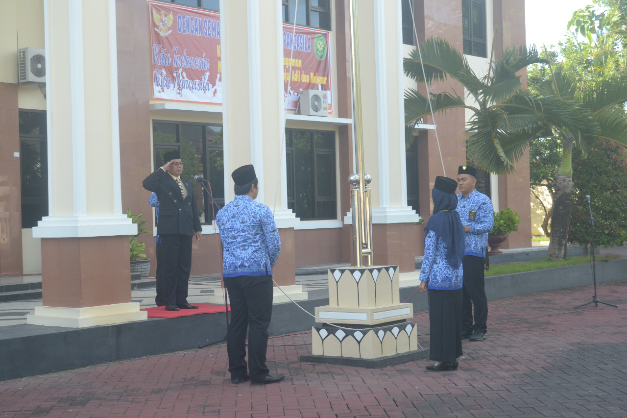 Menindaklanjuti Disposisi Ketua Mahkamah Agung RI tanggal 16 Mei 2019 Nomor : 485/Set.KMA/IN/V/2019 sehubungan dengan diterimanya surat dari Badan Pembinaan Ideologi Pancasila Republik Indonesia Nomor : B.116/Ka.BPIP/05/2019 tanggal 13 Mei 2019 serta Surat Sekretaris Mahkamah Agung RI Nomor : 663/SEK/KS.00/5/2019 tanggal 20 Mei 2019 tentang Penyelenggaraan Upacara Bendera Peringatan Hari Lahir Pancasila Tahun 2019, dengan dasar ini Pengadilan Agama Pacitan melaksanakan Peringatan Hari Lahir Pancasila Tahun 2019.