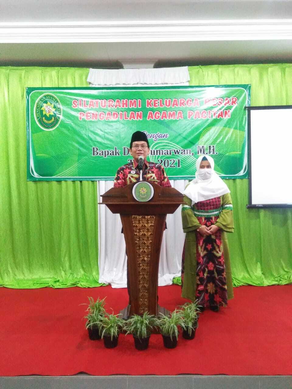Bapak Ketua YM Drs. H.Sumarwan, M.H. dalam sambutannya didampingi istri tercinta menyampaikan terima kasih kepada seluruh karyawan-karyawati atas kebersamaan yang selama ini terjalin sangat baik di PA Pacitan.