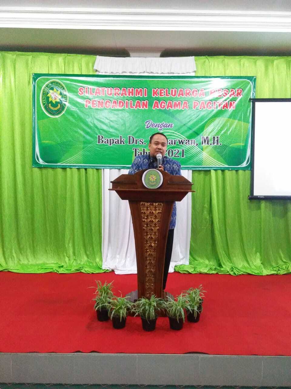 Ketua Pengadilan Agama Pacitan Muhamad Rizki, S.H., dalam sambutannya menyampaikan ucapan terima kasih dan penghargaan yang setinggi-tingginya kepada Bapak Ketua YM Drs. H.Sumarwan, M.H. atas dedikasi, pengabdian, sumbangsih baik moril maupun materiil selama berkarir di PA Pacitan. Semoga dengan jabatan barunya, Bapak Ketua YM Drs. H.Sumarwan, M.H. dapat mengemban amanah yang diberikan dengan sebaik-baiknya dan sukses selalu.