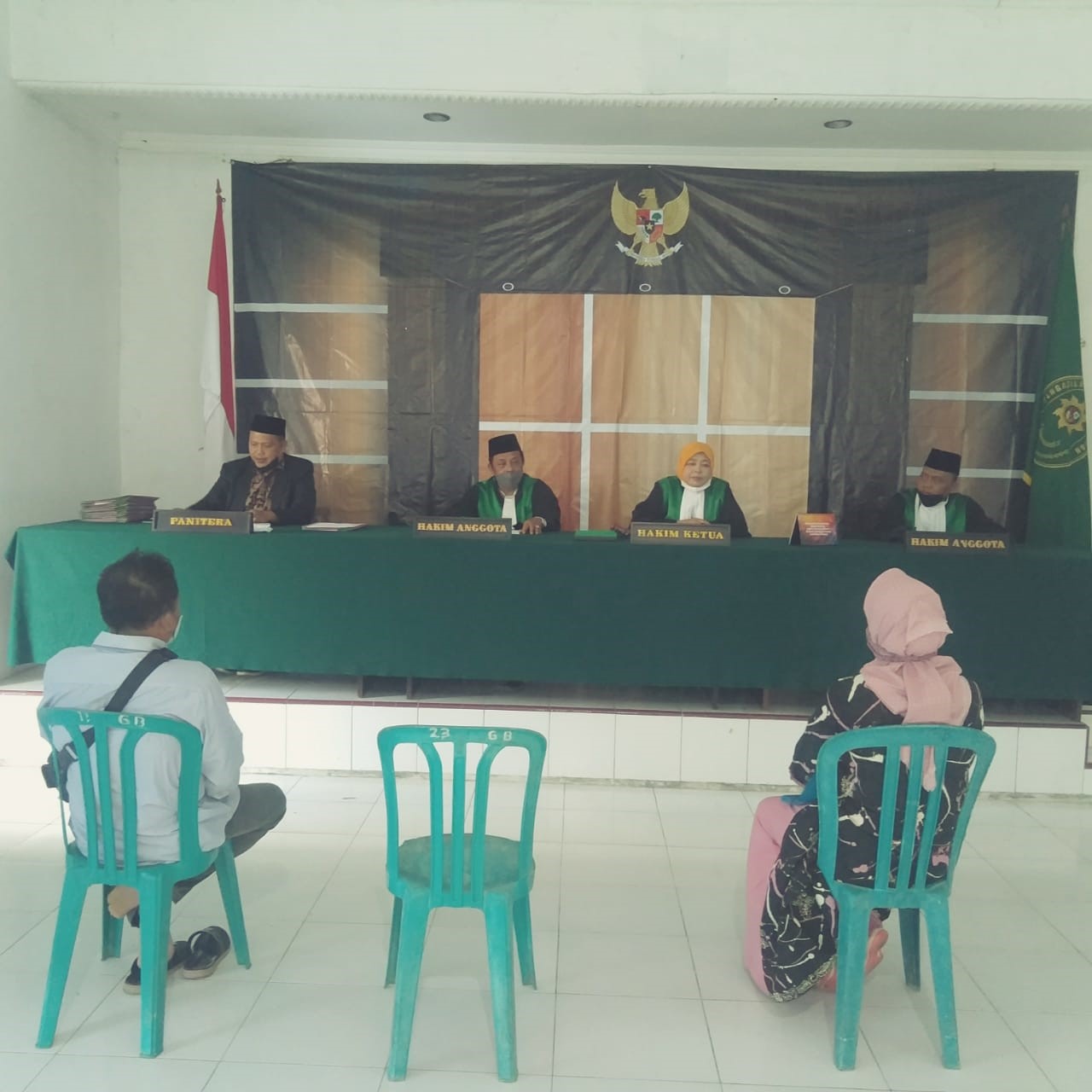 Sidang diluar gedung kali ini yang bertindak selaku Ketua Majelis Ibu. Dra. Nur Habibah sedangkan bapak Drs. Miswan, S.H. dan Drs. H. Munirul Ihwan, M.Hi. bertindak sebagai Hakim Anggota serta dibantu 1 orang Panitera Pengganti dan tim pelaksana sidang diluar gedung pengadilan. Yang dalam pelaksanaan dapat dibilang cukup sukses mengapa demikian karena hal ini dilaksanakan di masa pandemi covid-19 dengan merebaknya varian baru yaitu omikron.