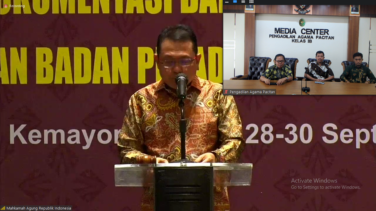 Pacitan, 30 September 2022. Menindaklanjuti Surat Keputusan Ketua Mahkamah Agung Nomor 92/KMA/SK/III/2022 tentang Jaringan Dokumentasi dan Informasi Hukum di Lingkungan Mahkamah Agung RI dan Badan Peradilan yang Berada di Bawahnya dan Pengembangan Website JDIH V2 maka dilaksanakan Sosialisasi Kebijakan dan Penggunaan Website tersebut pada 29 September 2022 dan diikuti oleh seluruh Sekretaris pengadilan tingkat pertama pada 4 (empat) lingkungan peradilan seluruh Indonesia. Sekretaris Pengadilan Agama Pacitan berserta Kasubag PTIP dan Operator IT turut serta pada Zoom Sosialisasi JIDH v2 yang dilaksanakan mulai pukul 09.00 WIB.