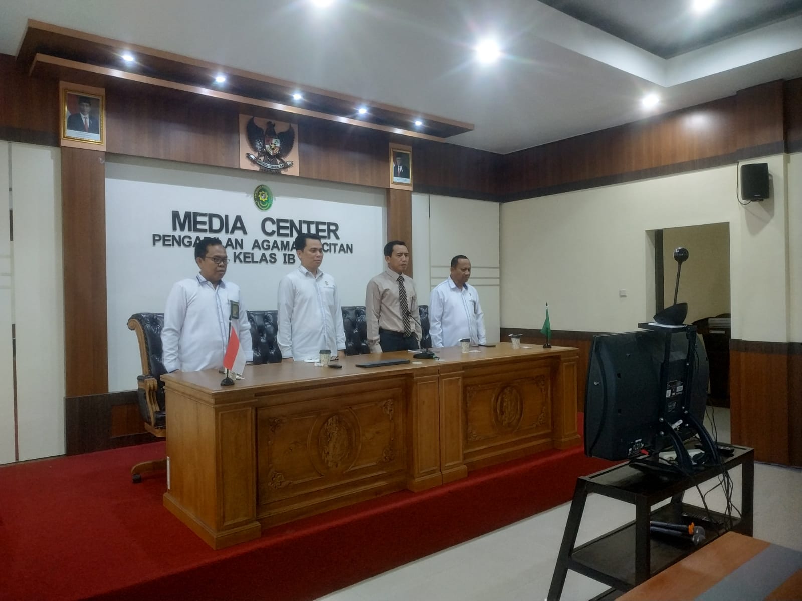 Pacitan, 3 oktober 2022. Dalam rangka meningkatkan Integritas Pejabat Pimpinan Tingkat Banding dan Tingkat Pertama di Lingkungan Peradilan Agama Mahkamah Agung RI, Pengadilan Agama Pacitan mengikuti Pengucapan Pakta Integritas. Kegiatan ini dilaksanakan secara virtual melalui Zoom dipimpin oleh Dirjen Badilag dan diikuti oleh seluruh satuan kerja dibawahnya mulai pukul 13.00 WIB. Kegiatan ini dihadiri oleh Ketua dan Wakil Ketua, Panitera, dan Sekretaris Pengadilan Agama Pacitan.